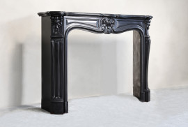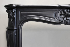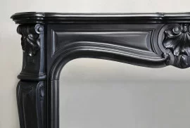 Wunderschöner antiker Kamin der seltenen Art Noir de Mazy-Marmor aus dem 19. Jahrhundert im Stil von Louis XV. Dieser Kaminmaske hat eine Muschel in der Mitte des Vorderteils und auch zwei Muscheln an den Beinen! Ein sehr schicker Kaminmaske mit warmer Ausstrahlung.