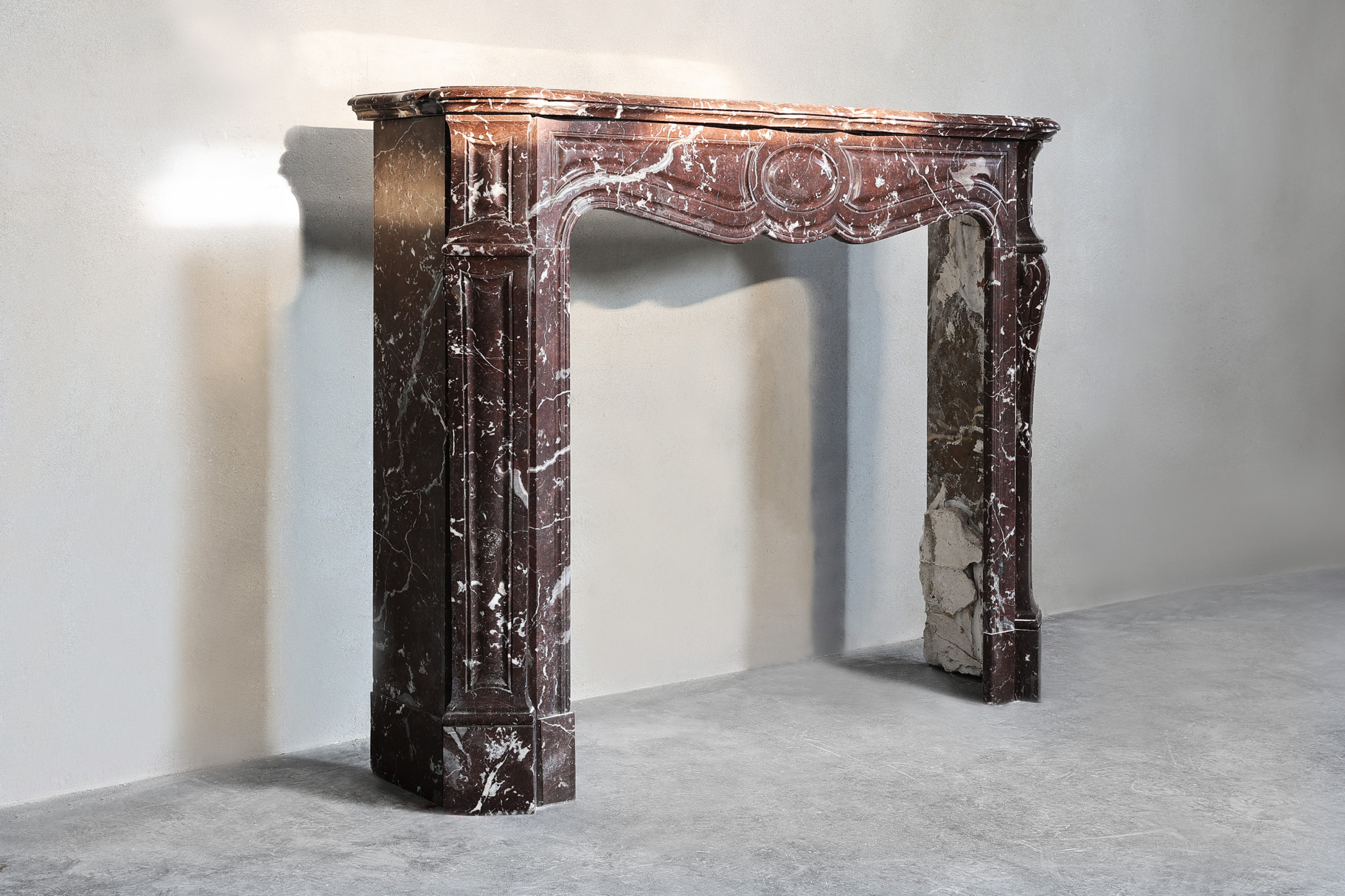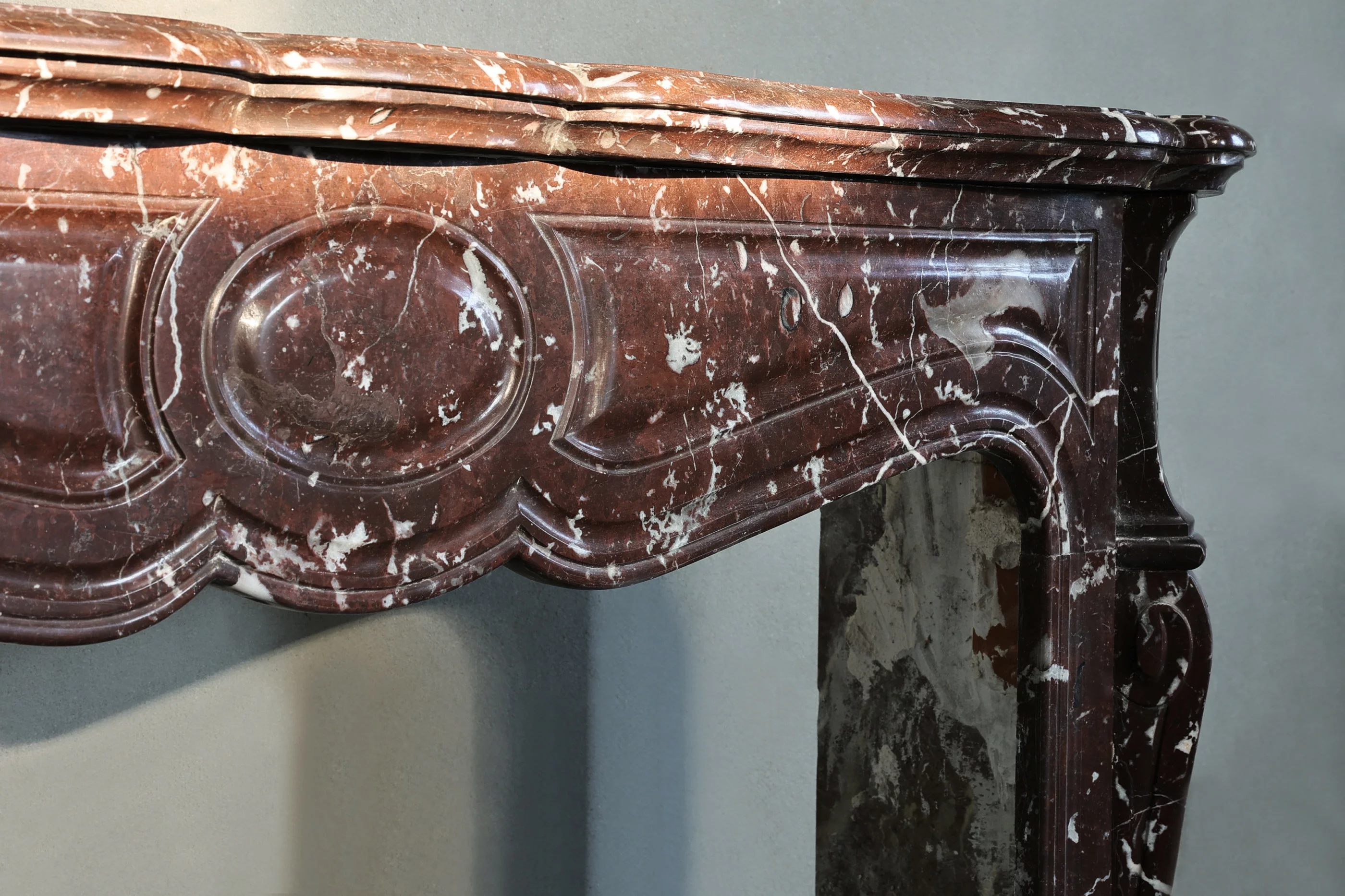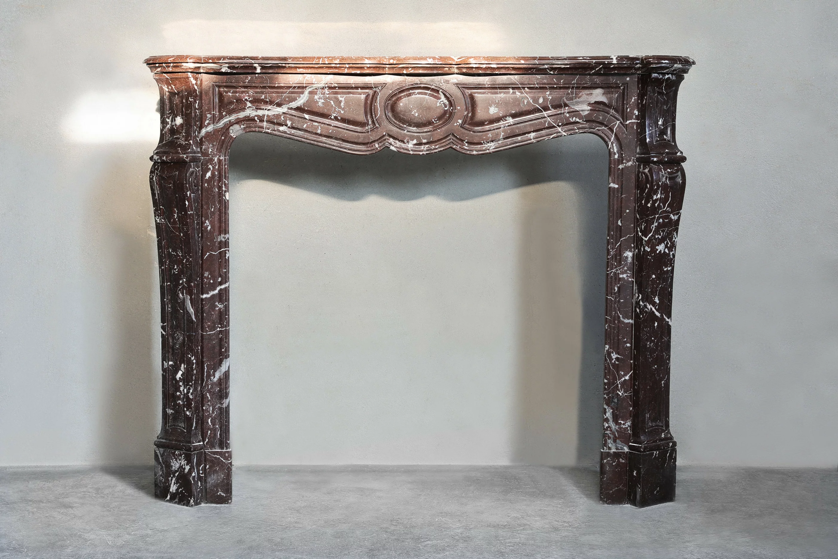 Dieser antiker Marmorkamin stammt aus der Zeit zwischen 1860 und 1880 und wurde im klassischen Pompadour-Stil gefertigt. Der verwendete Griotte Rouge Marmor zeichnet sich durch seine lebendige rotbraune Farbgebung aus, die den Kamin zu einem echten Blickfang macht. Mit seiner Herkunft aus Paris, Frankreich, verkörpert diese Kaminmaske höchste Handwerkskunst und zeitlose Eleganz.