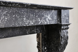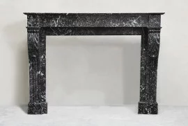 Wunderschöner antiker Kaminmaske aus schwarzem Marmor mit weißen Adern im Stil von Louis XVI aus dem 19. Jahrhundert! Dieser schöne, schlanke Mantel hat leicht geschwungene Beine und ein warmes Aussehen! Ein wunderschöner Kamin mit einer zugänglichen Größe.