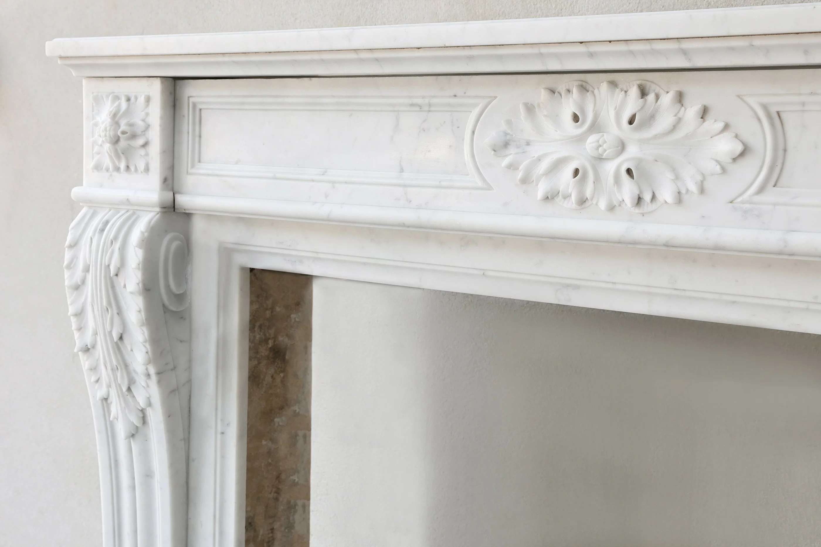 Dieser antike Marmorkamin aus dem 19. Jahrhundert, mit Ursprung in Lille, Frankreich, verleiht Ihrem Zuhause eine einzigartige Eleganz. Gefertigt aus hochwertigem italienischen Carrara Marmor und im klassischen Louis XVI Stil, zeigt diese Kaminumrandung keine Risse und befindet sich in perfektem Zustand. Mit einem Preis von €6.950 (exkl. MwSt.) bietet diese antike Kaminmaske ein exklusives Stück Geschichte und Stil, ideal um jedem Raum eine luxuriöse Note zu verleihen.
