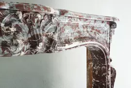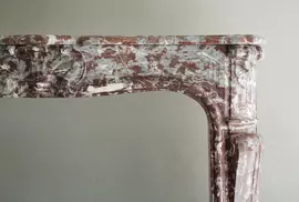 Herrlicher antiker Marmor Kamin aus dem 18. Jahrhundert, Epoche von Louis XV. Ausgestattet mit einer schönen Jakobsmuschel in der Mitte und einer schönen Form (Rahmen). Der Marmortyp ist Gris de Ardennes.