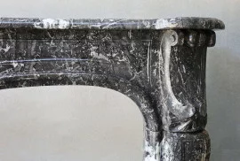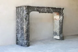 Schöner schicker antiker Kamin aus Sint Anna Marmor, einem schönen ruhigen Marmor mit hellen Adern. Dieser Kamin ist im Stil von Louis XV und stammt aus dem 18. Jahrhundert. Die schönen Adern und kunstvollen Ornamente machen diesen Kamin charmant.