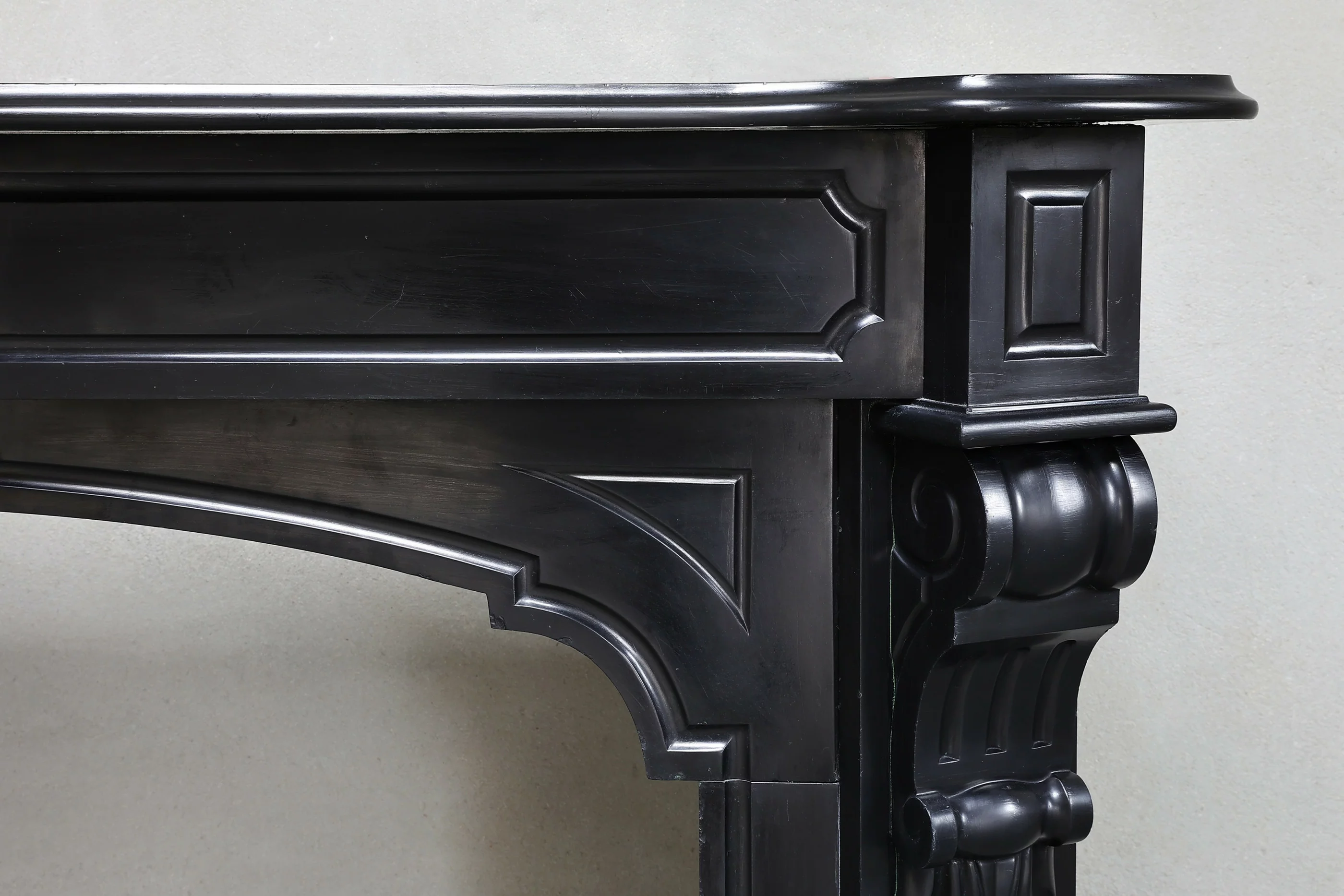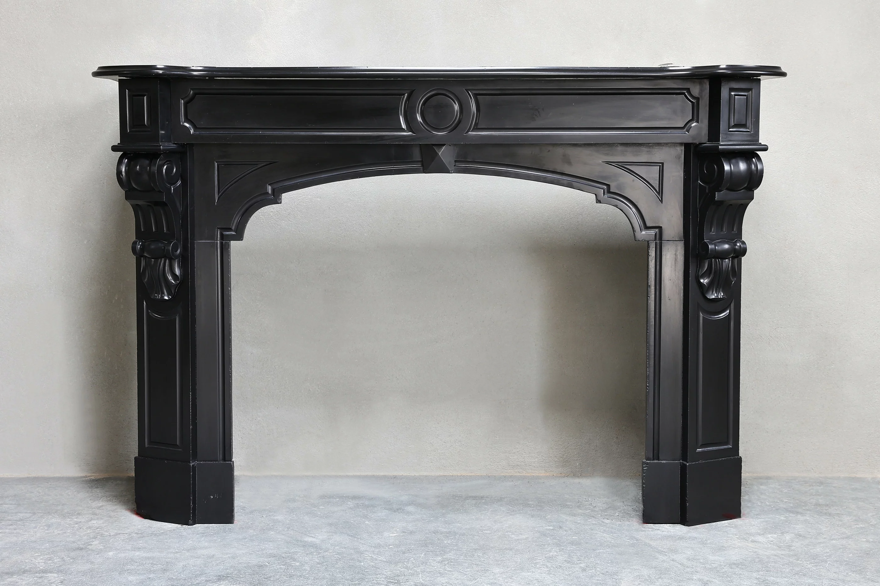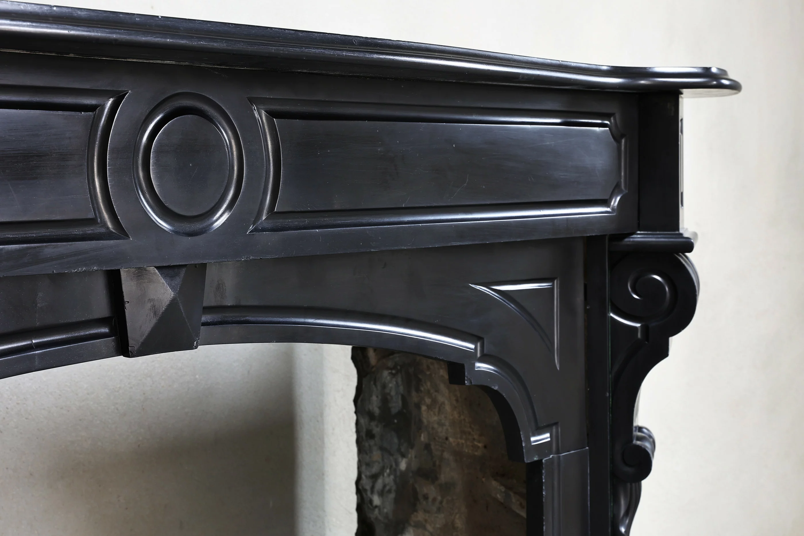 Sehr schicker antiker Kamin aus Noir de Mazy Marmor aus dem 19. Jahrhundert! Der schöne Mantel hat schöne Verzierungen im Vorderteil und an den Beinen. Ein schöner dekorativer Kamin, der in einem klassischen oder modernen Interieur großartig aussieht!
