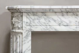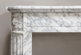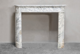 Dieser antiker Kamin aus Statuario-Marmor stammt aus dem 19. Jahrhundert und ist im Stil Ludwigs XVI gehalten. Statuario-Marmor ist eine der klassischen Marmorarten, die ursprünglich häufig in italienischen Palästen verwendet wurde. Der Louis-XVI-Stil zeichnet sich durch detaillierte Schnitzereien und anmutige Linien und Kannelierungen an den Beinen aus. Ein schönes Möbelstück für jedes Interieur.