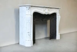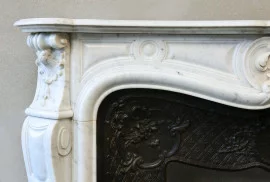 Wunderschöner antiker Kaminmaske aus Carrara-Marmor im Stil von Louis XV aus dem 19. Jahrhundert. Dieser Kamin hat einen schön passenden Gusseiseneinsatz, der den Kamin komplett und besonders macht! Dieser anmutige Kamin hat eine elegante Schale in der Mitte und auf beiden Seiten der Beine! Ein sehr schöner Kamin!