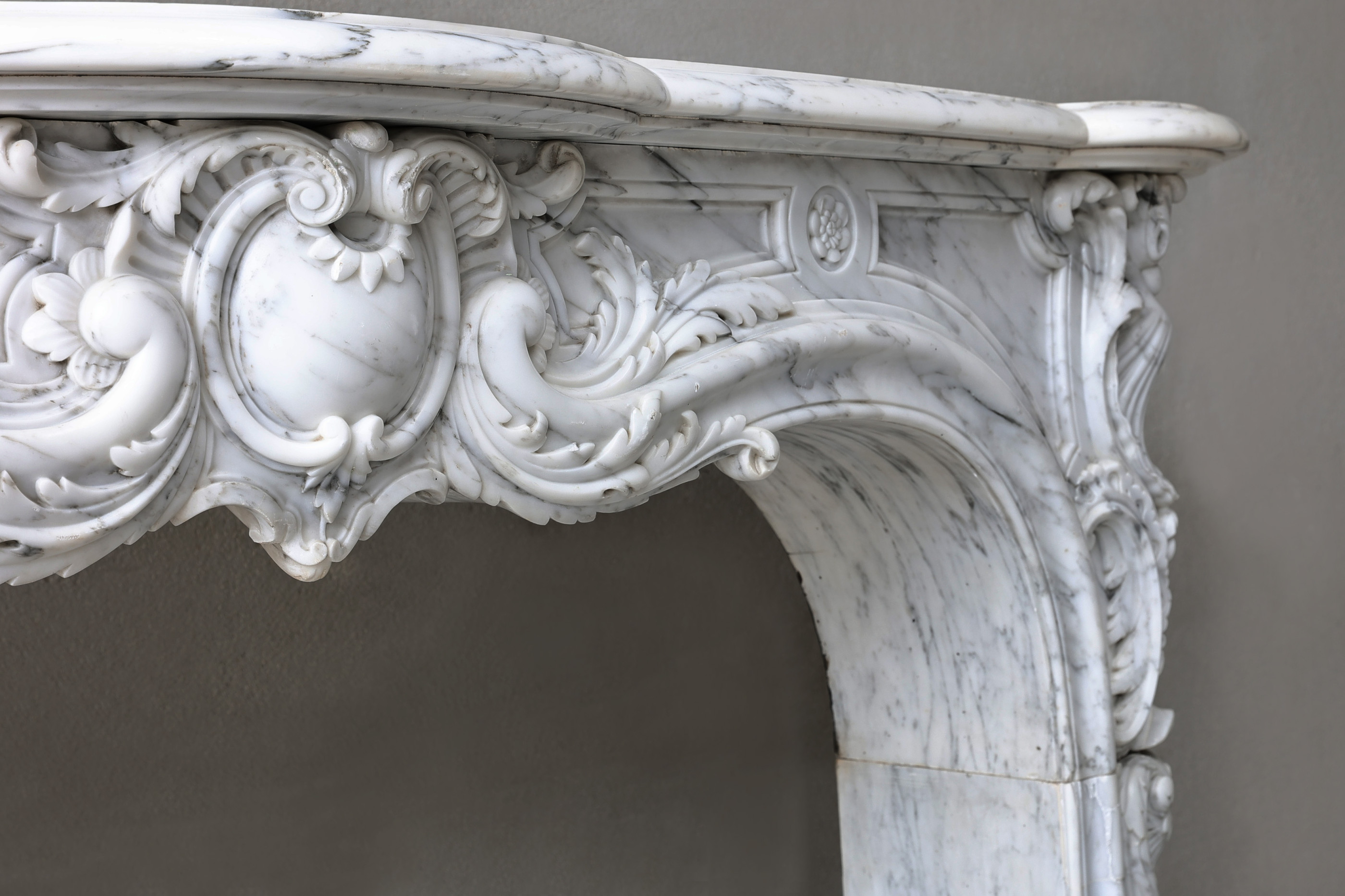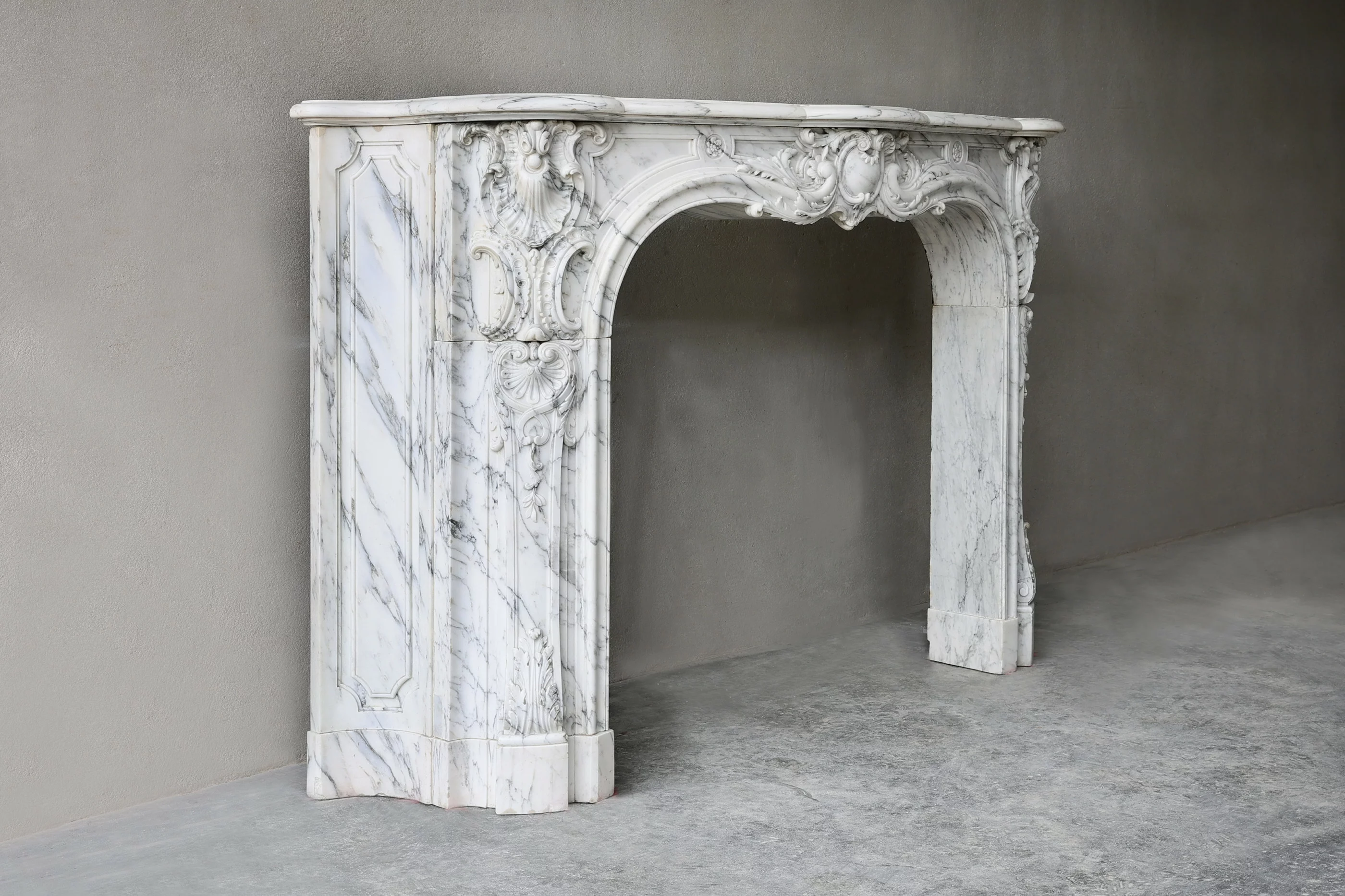 Wenn Sie einen unserer antiken Kamine erwerben, investieren Sie nicht nur in ein atemberaubendes Zentrum für Ihr Zuhause, sondern holen auch ein Stück Geschichte in Ihren Wohnraum. Stellen Sie sich die Wärme eines knisternden Feuers vor, umrahmt von den eleganten Kurven und kunstvollen Schnitzereien eines jahrhundertealten Kamin aus Carrara Arabescato-Marmor. Dieser verwandelt jeden Raum in ein Refugium der Anmut und Raffinesse.