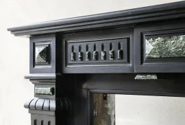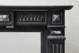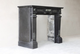 Dieser elegante Kaminsims aus dem 19. Jahrhundert besteht aus Noir de Mazy-Marmor, einem seltenen schwarzen Stein aus Belgien, in den ein kleines Stück grünen Vert de Mer-Marmor eingearbeitet ist. Die tiefe Farbe und die feinen Details verleihen diesem Kamin ein klassisches und stilvolles Aussehen. Mit seinen klaren Linien und dezenten Verzierungen passt dieser Kaminsims perfekt sowohl in ein klassisches als auch in ein modernes Interieur. Es ist ein einzigartiger und zeitloser Kaminsims, der jedem Raum Atmosphäre und Charakter verleiht. Ein besonderes Stück Geschichte für alle, die das ganz Besondere suchen.