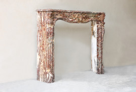 Dieser authentische antike Marmorkamin wurde im 19. Jahrhundert in Rouge Royal Belge gefertigt – ein seltener belgischer Rotmarmor mit feiner weiß-, grau- und grünlich-schimmernder Aderung. Die Louis-XV-Formgebung zeigt weiche Schwünge, feine Profilierungen und ausgewogene Proportionen.