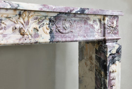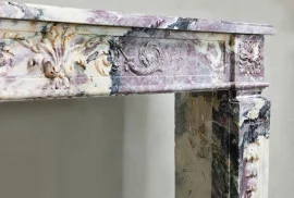 Sanft geschwungene Linien und die feine Marmorierung zeigen die Handwerkskunst des 19. Jahrhunderts. Das Material weist lebendige Adern auf, die dem Kamin Tiefe und Charakter verleihen.