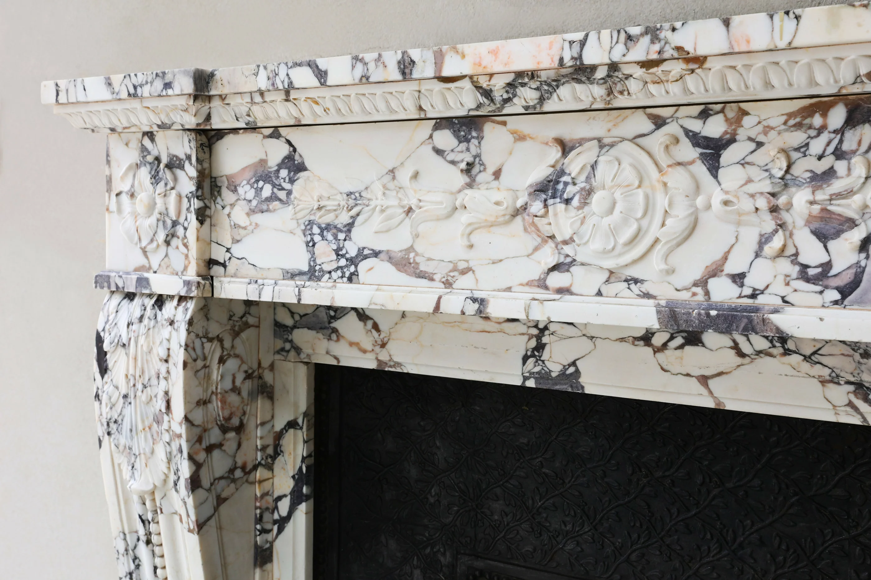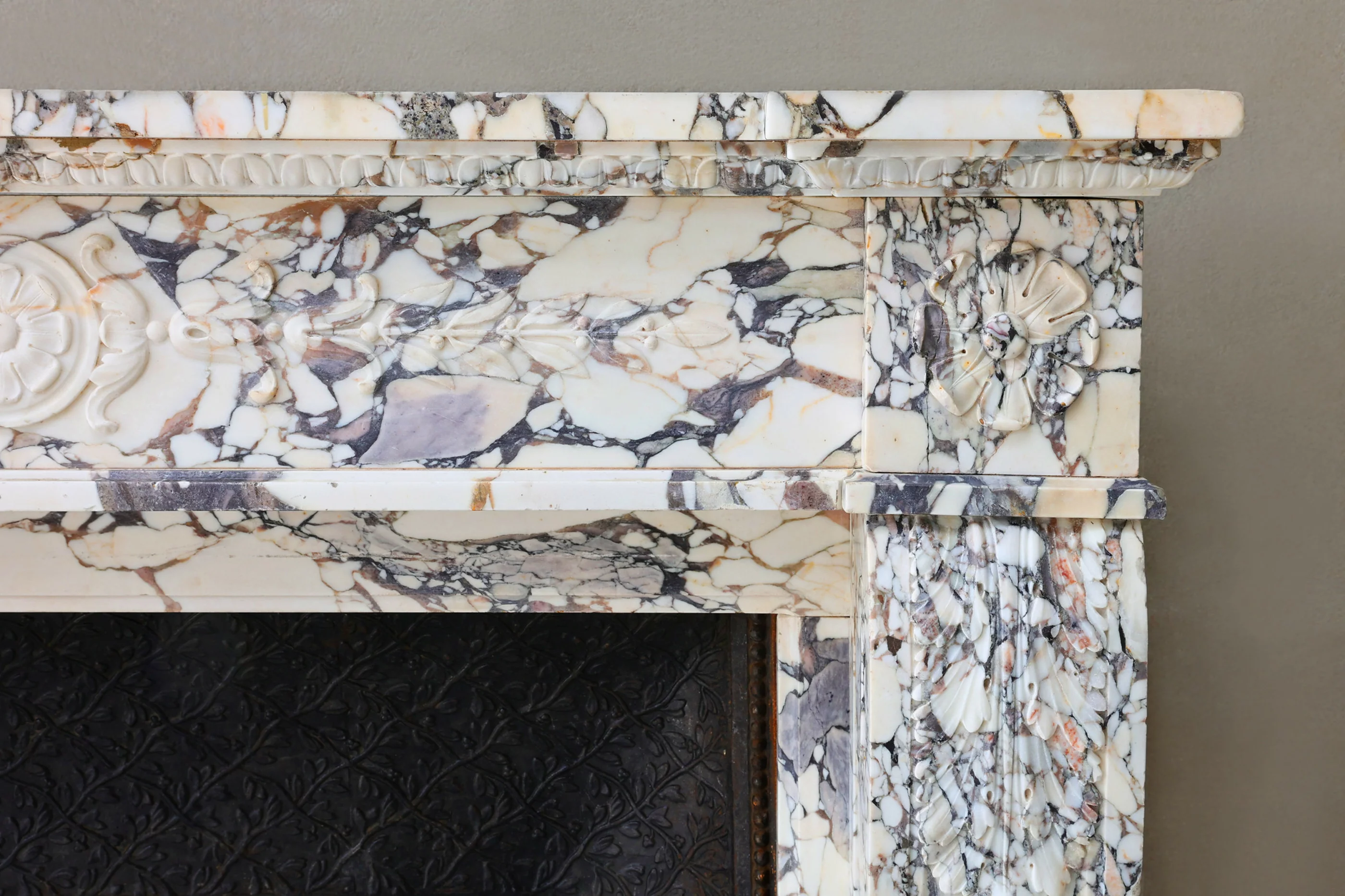 Dieser seltene Kamin stammt aus dem 19. Jahrhundert und wurde aus edlem Breche Médicis Marmor gefertigt.