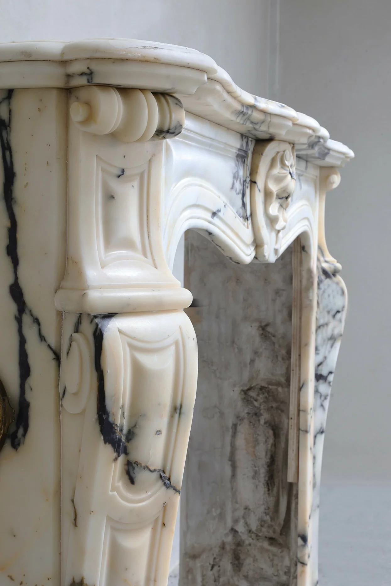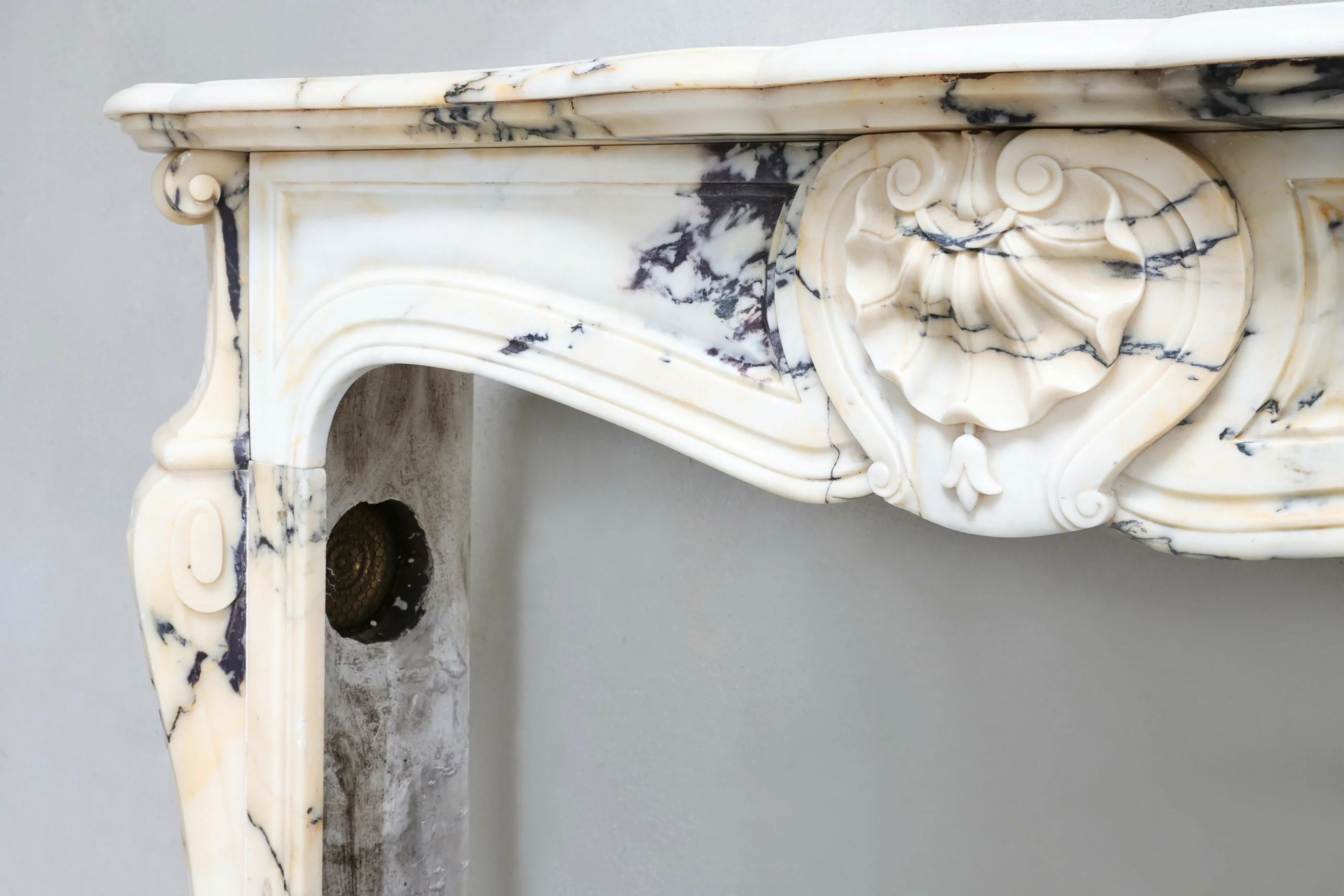 Dieser wunderschöne antike Marmorkamin stammt aus der Zeit von Ludwig XV, 19. Jahrhundert. Ausgestattet mit 3 Coquilles (3 Schalen) im vorderen Bereich und durchgehend an den Beinen. Dieser sehr anmutige Kamin hat eine wunderschöne Moulure. Die Marmorsorte heißt Rouge Royal. Die Beine werden in 45 Grad diagnostiziert.