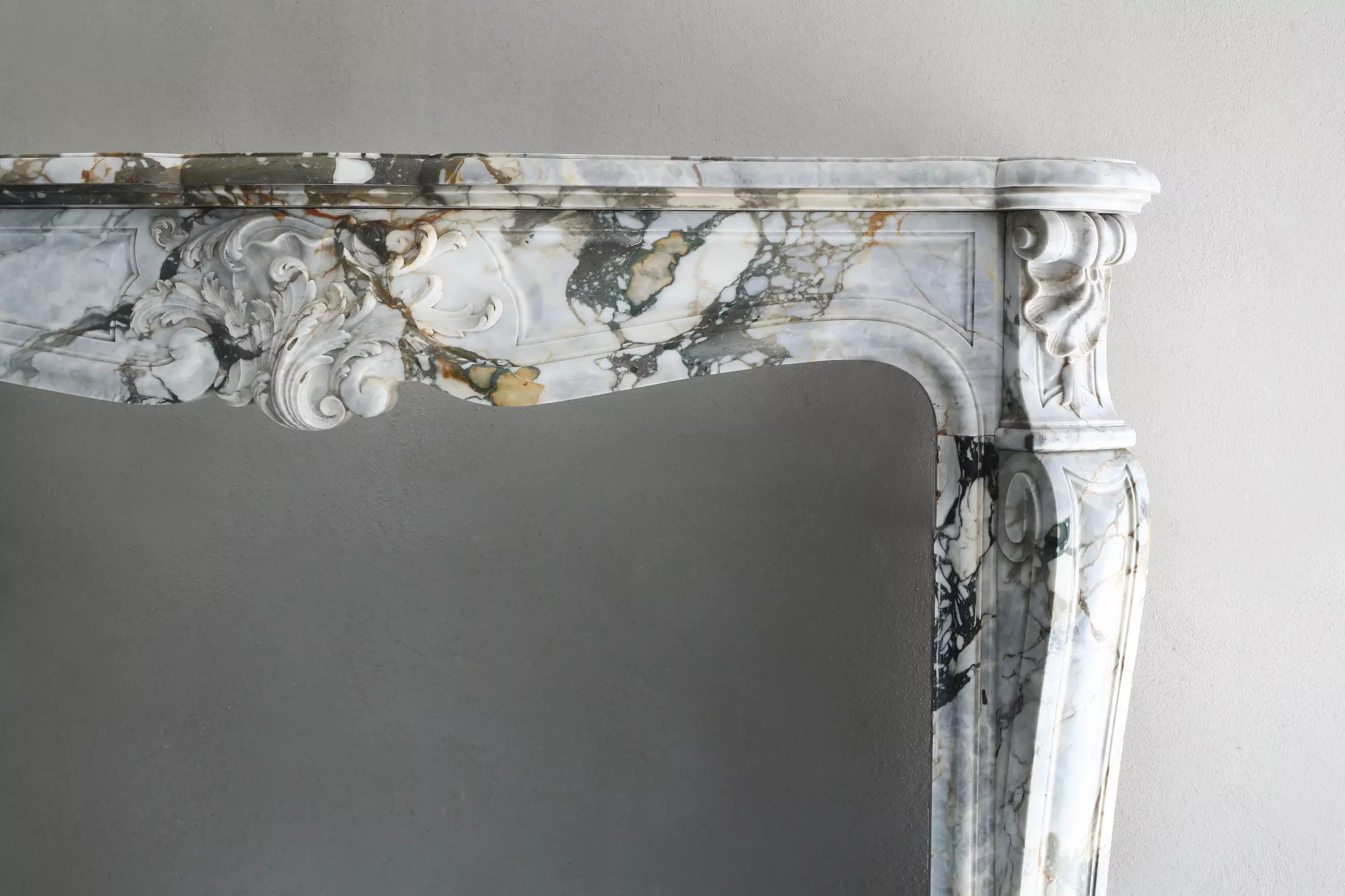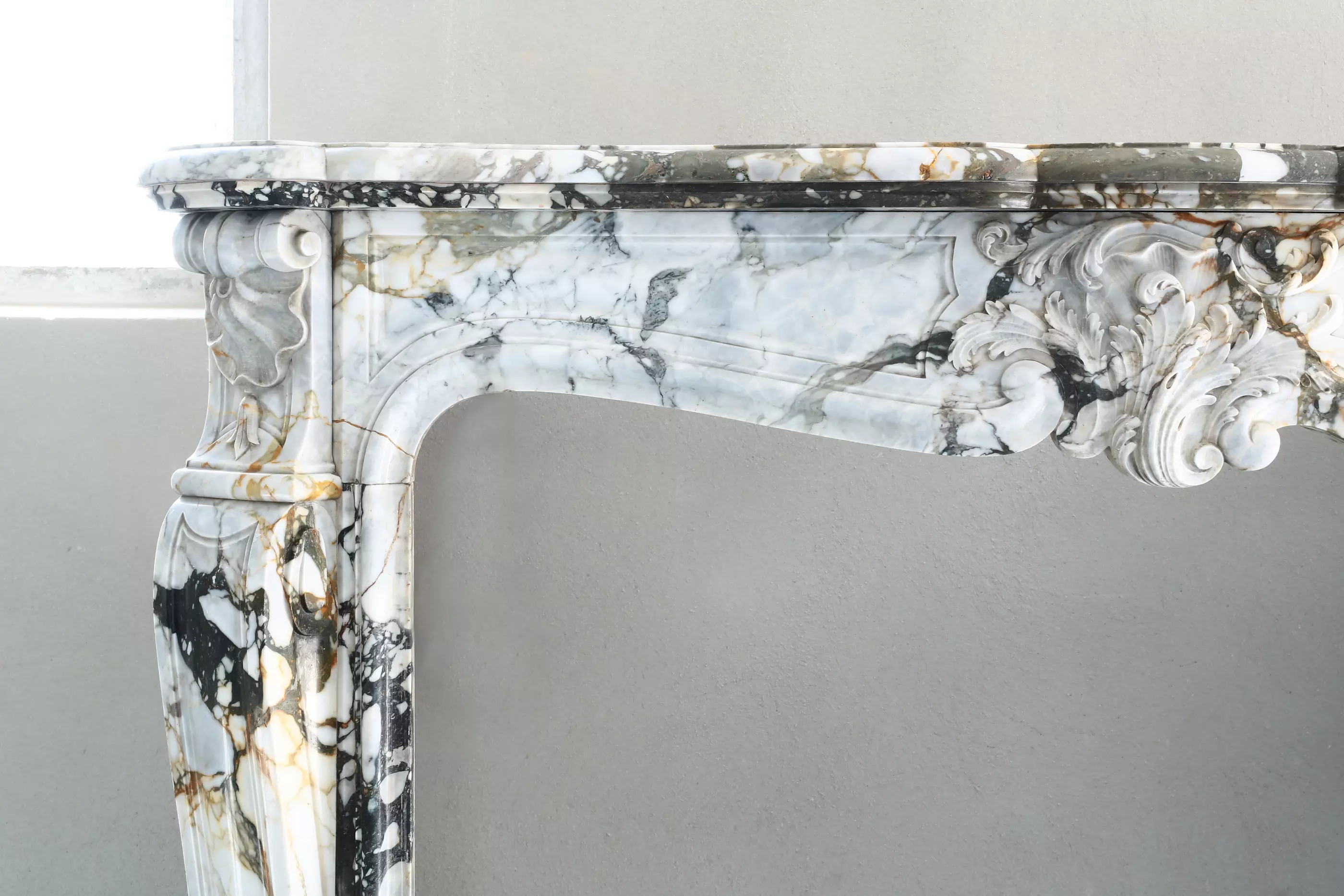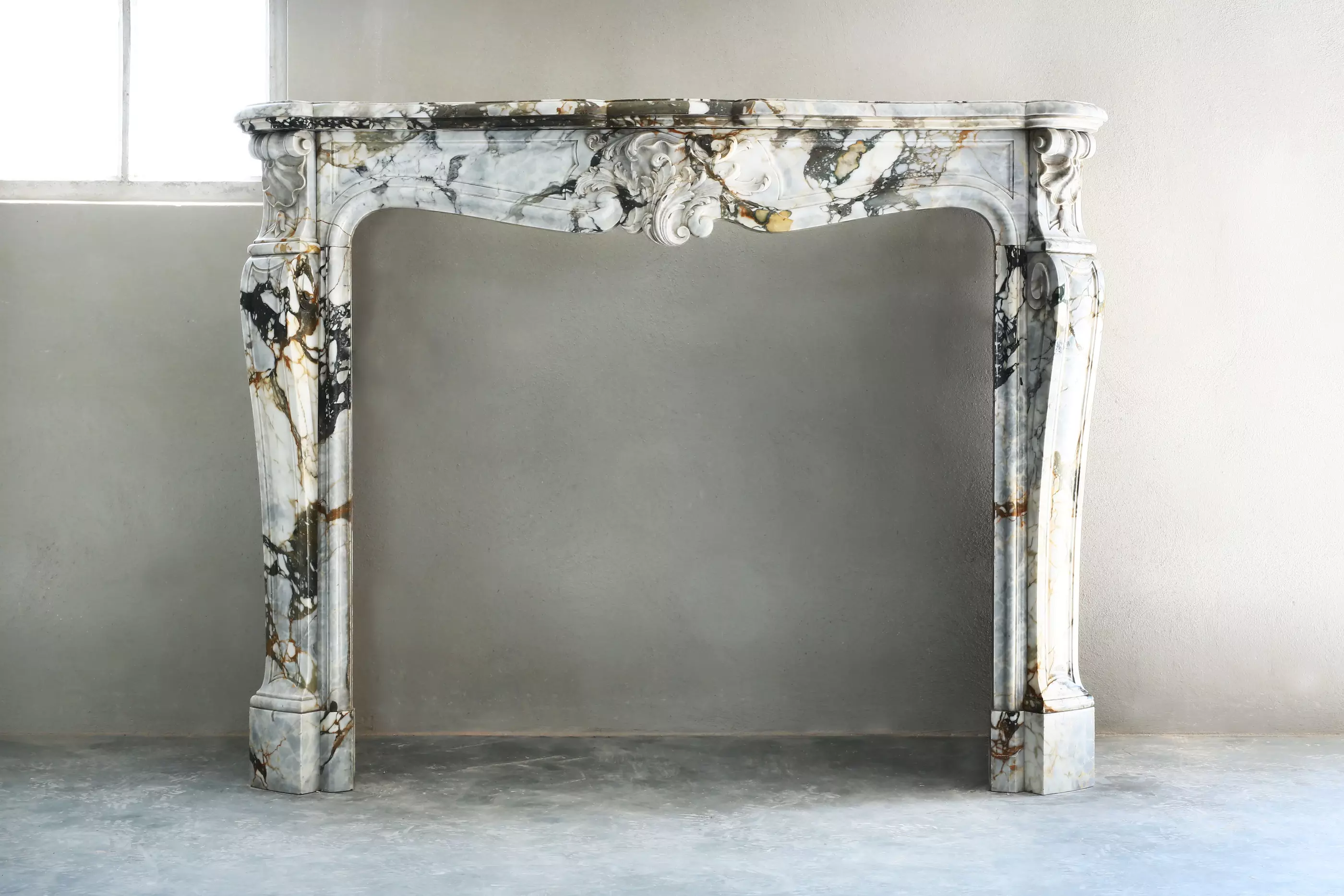 Wirklich ein wunderschöner einzigartiger antiker Marmorkamin aus dem exklusiven Paonazzo-Marmor aus Italien. Dieser Kamin stammt aus der Zeit von König Ludwig XV. Dies ist einer der älteren Marmortypen und wird aus den Carrara-Steinbrüchen gewonnen, die seit der Römerzeit existieren! Ein einzigartiger Look in unserem Sortiment.