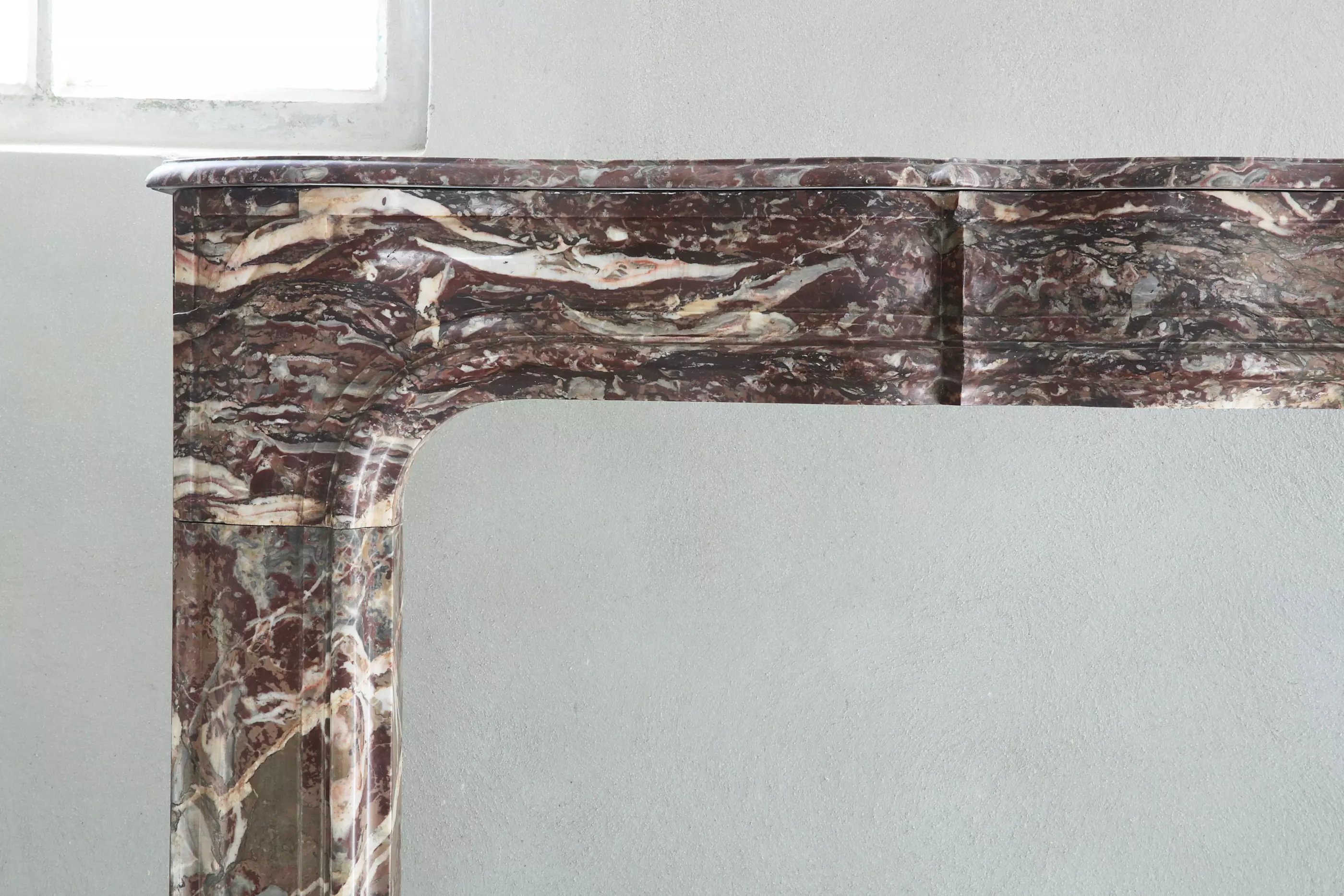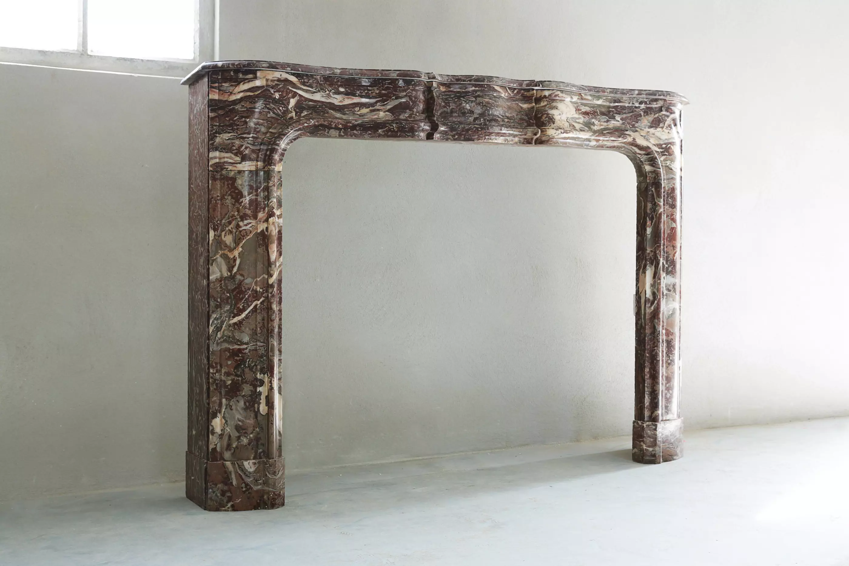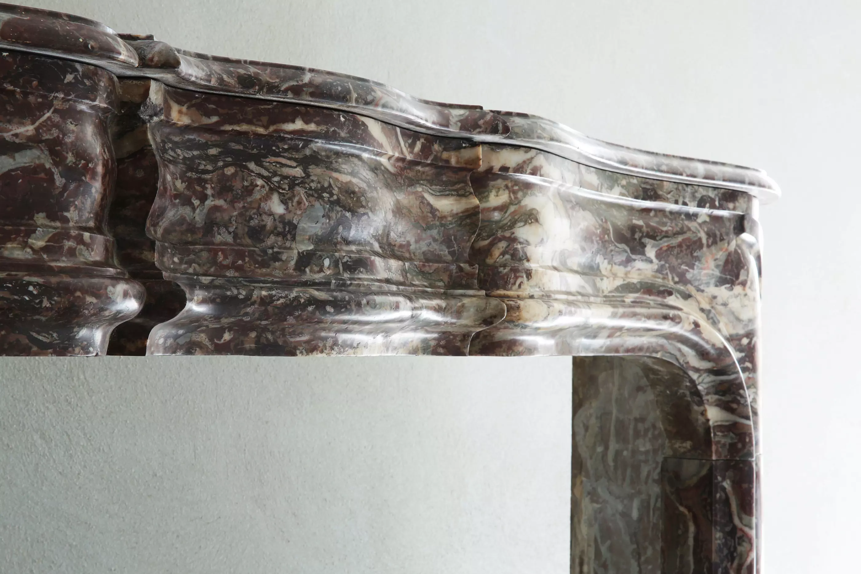 Dieser antike Kamin zeichnet sich durch die gewellte Form im vorderen Bereich aus. Der Rahmen dieses Kamins zusammen mit dem Farbton ist sehr speziell und eine Bereicherung für jedes Interieur! Der Kamin stammt aus dem 18. Jahrhundert.