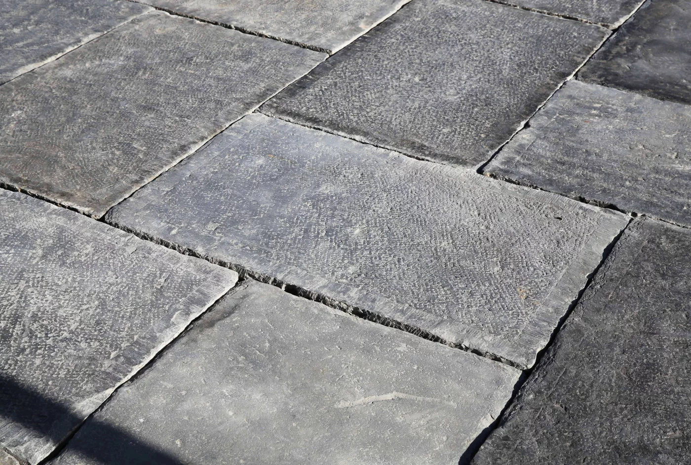 Vor kurzem wurde eine wunderschöne Schicksal aus antiken blaustein aus Doornik von der Erholung befreit! Diese Platten sind aufgrund ihrer Unvollkommenheiten und der grau-blauen Farbschattierung einzigartig. In Belgien werden diese antiken Böden oft als alte blaue Steinböden oder alte Blaustein-Täler bezeichnet. Die ursprünglichen Dicken dieser Fliesen sind etwa 10 bis 15 cm, aber wir können sie auf 2-3 cm zurückschneiden.
